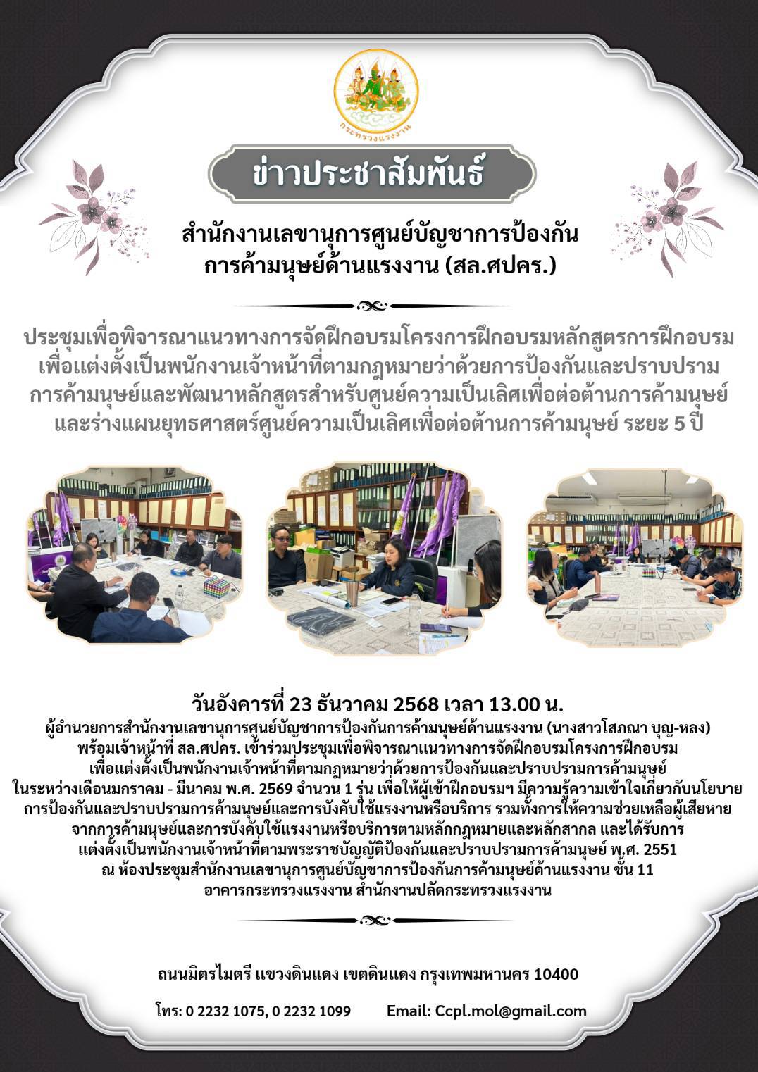 วันที่ 23 ธันวาคม 2568 สล.ศปคร. เข้าร่วมประชุมเพื่อพิจารณาแนวทางการจัดฝึกอบรมโครงการฝึกอบรมฯ