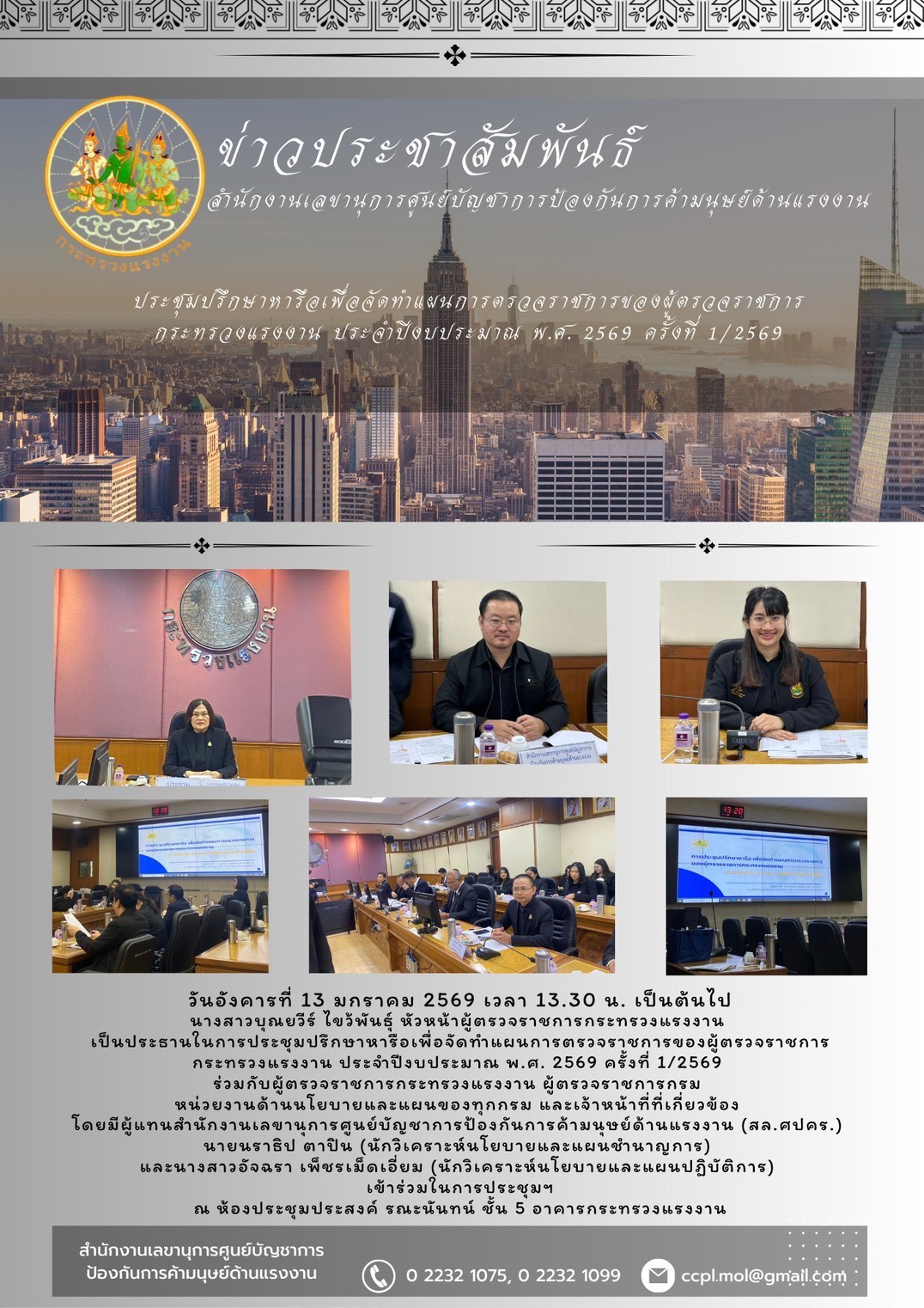 การประชุมปรึกษาหารือเพื่อจัดทำแผนการตรวจราชการของผู้ตรวจราชการกระทรวงแรงงาน ประจำปีงบประมาณ พ.ศ. 2569 ครั้งที่ 1/2569