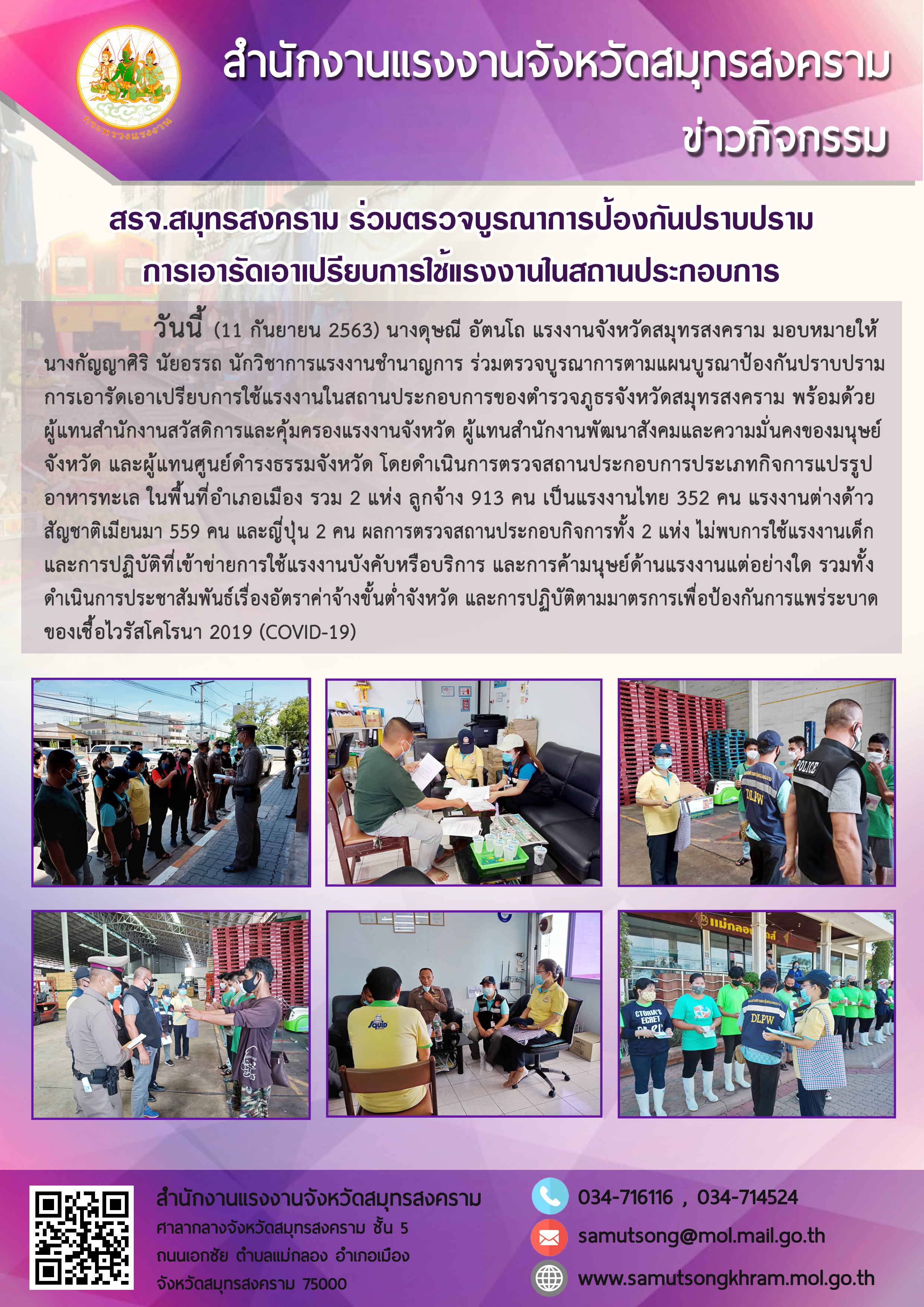 สำนักงานแรงงานจังหวัดสมุทรสงคราม ร่วมตรวจบูรณาการป้องกันปราบปรามการเอารัดเอาเปรียบการใช้แรงงานในสถานประกอบการ