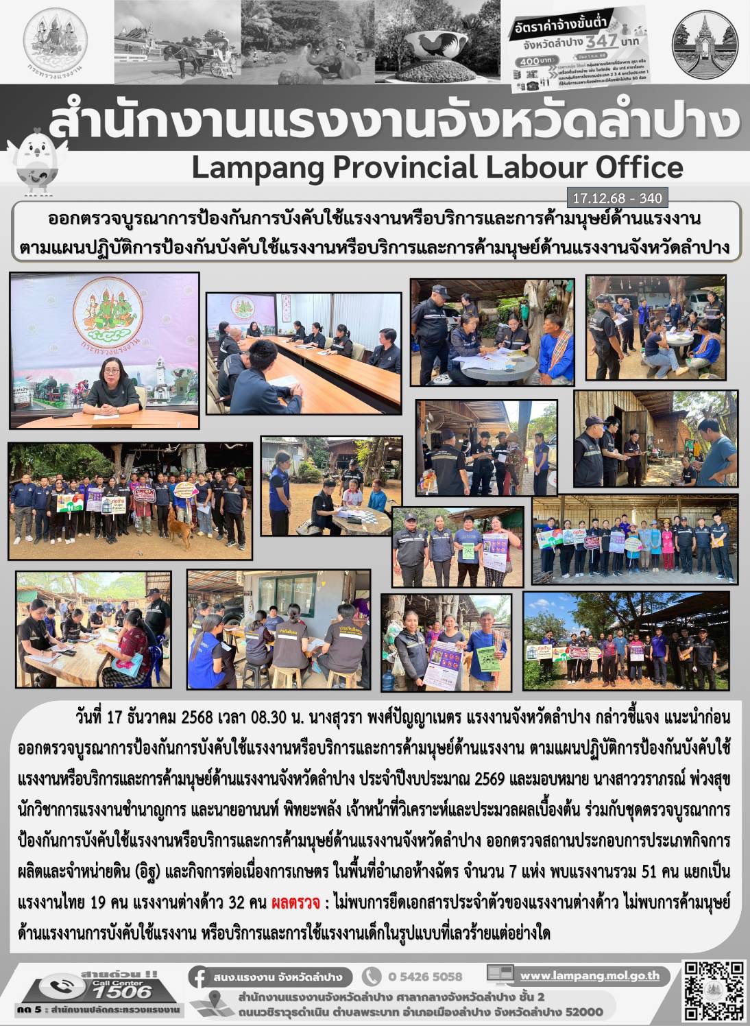 วันที่ 16ธันวาคม 2568 สรจ.นครปฐม ออกตรวจป้องกันและปราบปรามการค้ามนุษย์ด้านแรงงาน และกวดขันแรงงานที่ผิดกฎหมาย ในพื้นที่ อ.กำแพงแสน